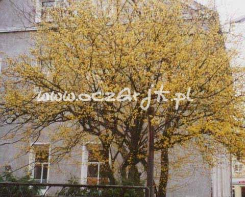m wysokości. Kwiaty żółte, zebrane w gęste kwiatostany, kwitną długo przed