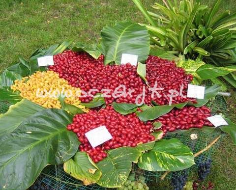 przekwitnięciu zawiązuje czerwone, jadalne owoce podobne do śliwek.