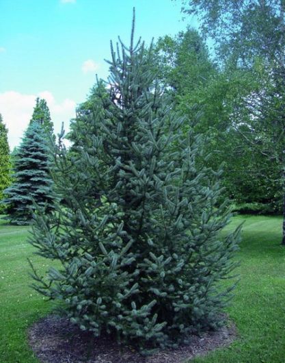 Pień niezbyt gruby, przeważnie osiąga 0, 6 m średnicy w pierśnicy, pokryty szarobrązową, nieregularnie łuszczącą się korą. Gałęzie długie, z uniesionymi w górę końcówkami. Igły sinozielone, ostre, kłujące, twarde, o długości 1, 3-3 cm i grubości ok. 2 mm, rosną głównie na górnej części pędów, ale wyginają się także na dolną ich część. Szyszki za młodu zielone, potem brązowożółte, o kształcie wydłużonym, walcowatym, o wymiarach 6-9 × 2, 5-3, 5 cm. Przystosowany do ubogiej gleby i niskich temperatur gatunek, może być uprawiany nawet na słabszych, mniej zasobnych glebach. Przekorzenione drzewo dobrze znosi okresy suszy, nie toleruje stojącej wody. Dobrze zimuje w całej Polsce. Wymaga słonecznego stanowiska. Jako rzadko spotykany, mało znany gatunek jest polecany przede wszystkim do ogrodów kolekcjonerskich, jednak z powodzeniem może być uprawiany w przeciętnych ogrodach i parkach. Zwarty, regularny pokrój i lekko niebieskawa barwa igieł sprawiają, że świerk ten jest dekoracyjnym drzewem. Może rosnąć jako soliter, ale dobrze wygląda także w grupie, zwłaszcza w dużych, naturalistycznych ogrodach.