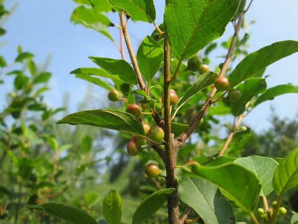 Krzew ten osiąga wysokość do 6 m. Ma gęste gałęzie z cierniami w rozgałęzieniach pędów, czym różni się od podobnego gatunku kruszyny pospolitej, nie posiadającej cierni. Liście są eliptyczno-jajowate, zaostrzone, o długości 3–6 cm, przy szerokości 1,5–3 cm, z zaokrągloną podstawą, brzegiem równo piłkowane, delikatnie, krótko owłosione. Ogonki o długości ok. 1,5 cm, odstające i owłosione. Nerwy boczne mają zagięte ku szczytowi blaszki. Pączki wydłużone, spiczaste, przylegające do gałązek, brunatnoczerwone. Kwiaty są drobne i niepozorne, żółtawozielone, wyrastają w pęczkach z kątów liści. Są 4-krotne, przedprątne, rozdzielnopłciowe lub obupłciowe.
