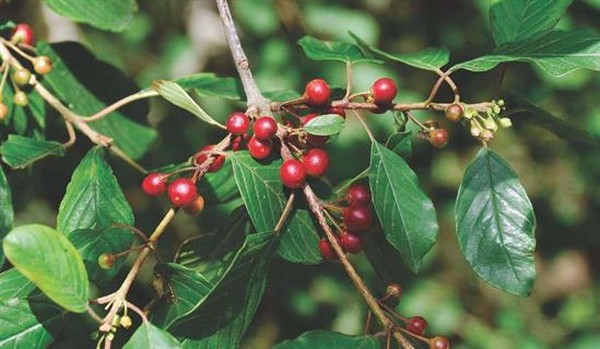 W stanie naturalnym kruszyna pospolita to okazały krzew lub drzewo dorastające do 7 m wysokości. Ma brunatną, ciemną i gładką korę, która po uszkodzeniu wydziela nieprzyjemny zapach. Kruszyna swoją nazwę zawdzięcza delikatnym i kruchym pędom. Jajowate, matowe liście kruszyny pospolitej układają się na pędzie skrętolegle. Wierzchołek liścia jest zaostrzony, a blaszka wygięta do góry. Wyrastające w kątach liści drobne kwiaty kruszyny zebrane są w pęczki i pojawiają się w kwietniu. Kwitnienie trwa do lipca. Krzewy kruszyny to doskonałe rośliny miododajne, cenione przez pszczelarzy.