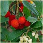 Charakterystyczną cechą drzewka truskawkowego są kuliste czerwone owoce, przypominające poziomki...